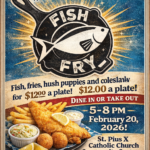 Fish, fries, hush puppies and coleslaw all for $12.00 a plate. Dine in or take out, 5-8...